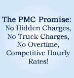 The PMC Promise: No Hidden Charges, No Truck Charges, No Overtime, Competitive Hourly Rates!